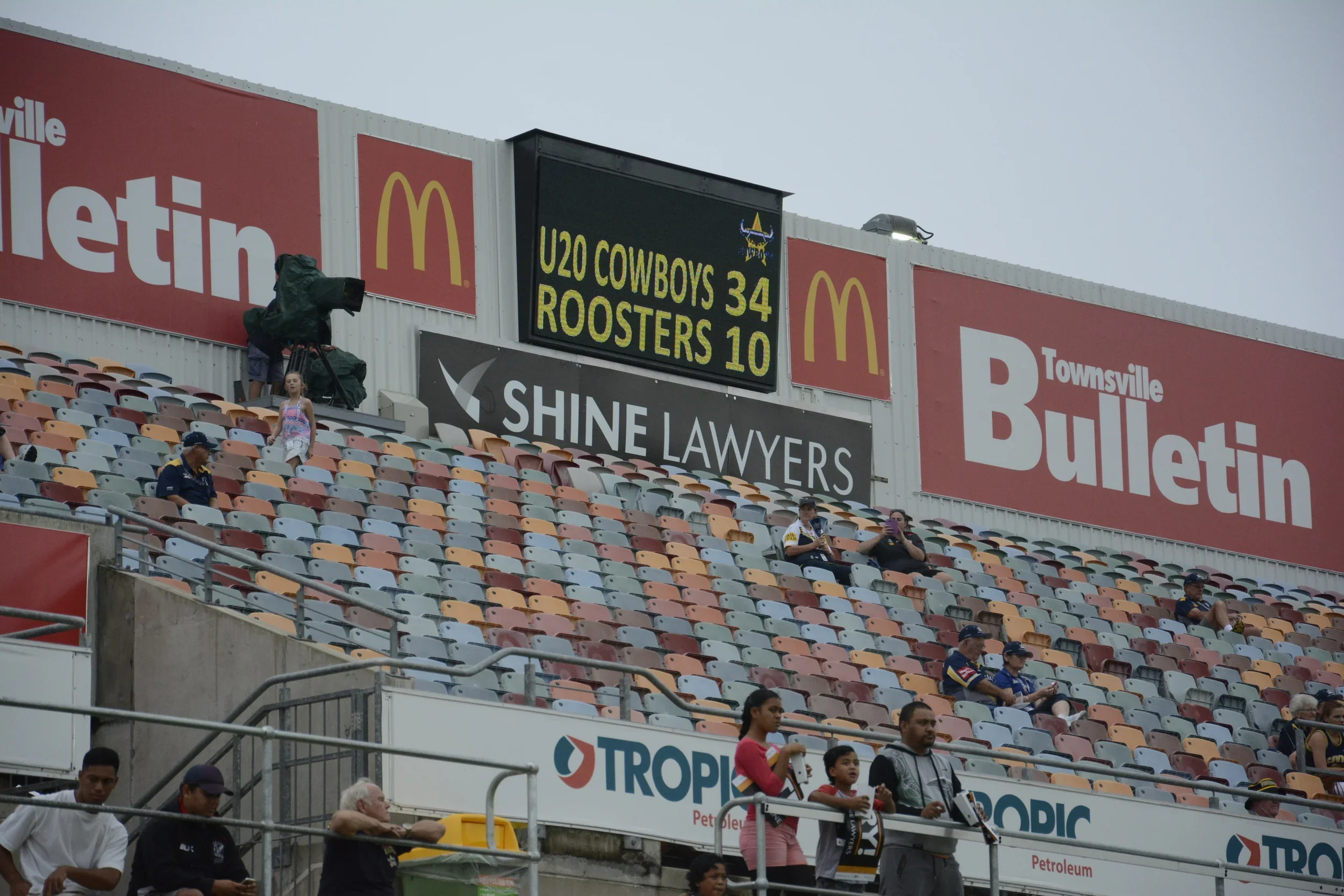 In early 2015, Techtel was chosen from a field of contenders to supply, design and construct a new scoreboard at 1300SMILES Stadium in Townsville, home of the North Queensland Cowboys. The project involved the removal of an older scoreboard on the Northern Stand which was replaced with a new, full colour LED scoreboard designed for all weather conditions. As part of the project Techtel was also required to install a scoreboard computer system that would supply the screen with match statistics, clocks and advertising.