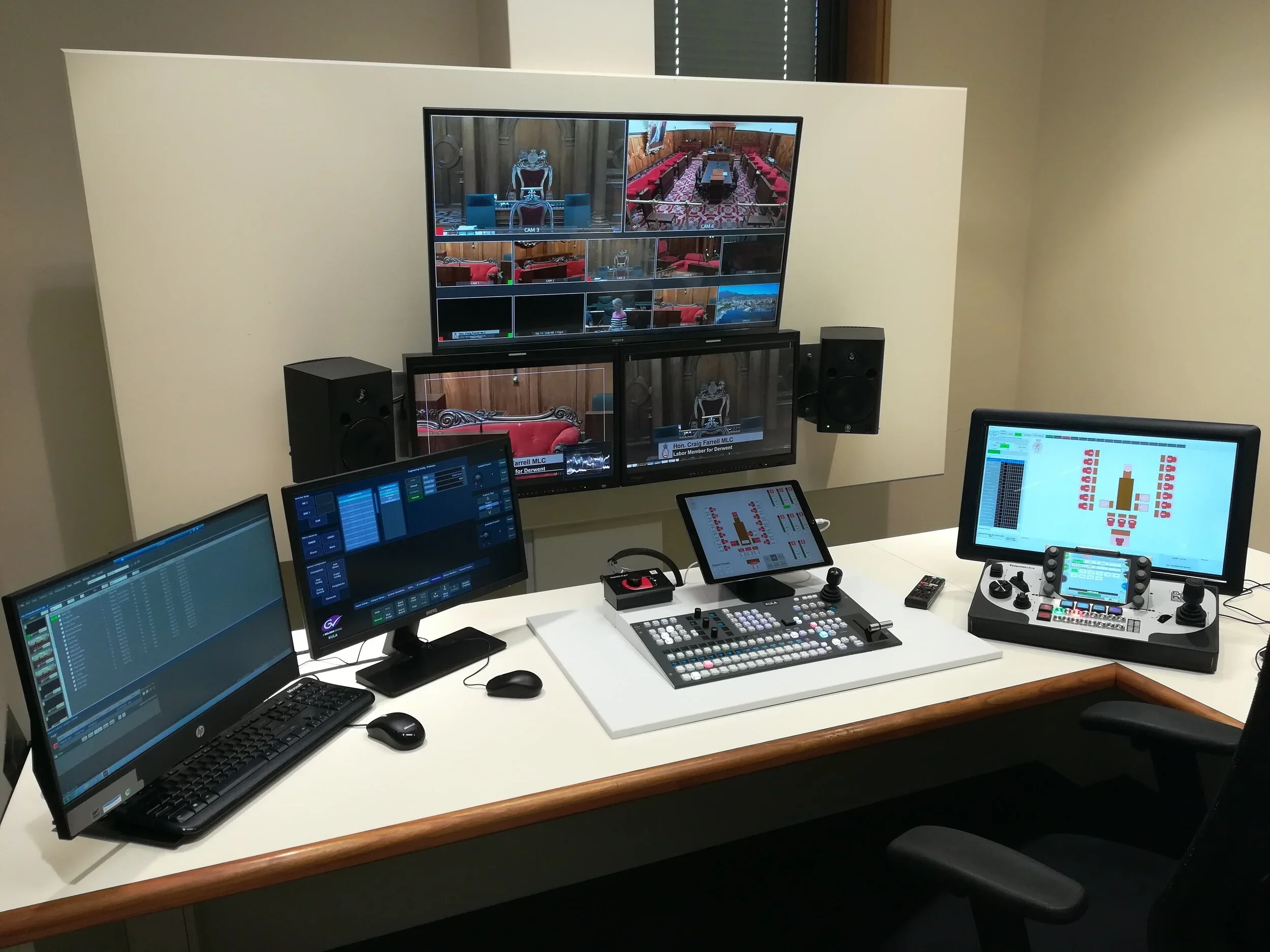 At the heart of the system are 4 x Telemetrics’ RCCP 1-A control panels coupled with the LGS (Legislative Government System) software application. Each control system integrates with the cameras and equipment in all seven broadcast capable rooms and chambers as well as six media booths; together they enable four concurrent production and/or broadcasting sessions. Each RCCP-1A can control unlimited number of cameras at a time, replacing the need for dedicated camera control units and supporting the Parliament’s future production needs.