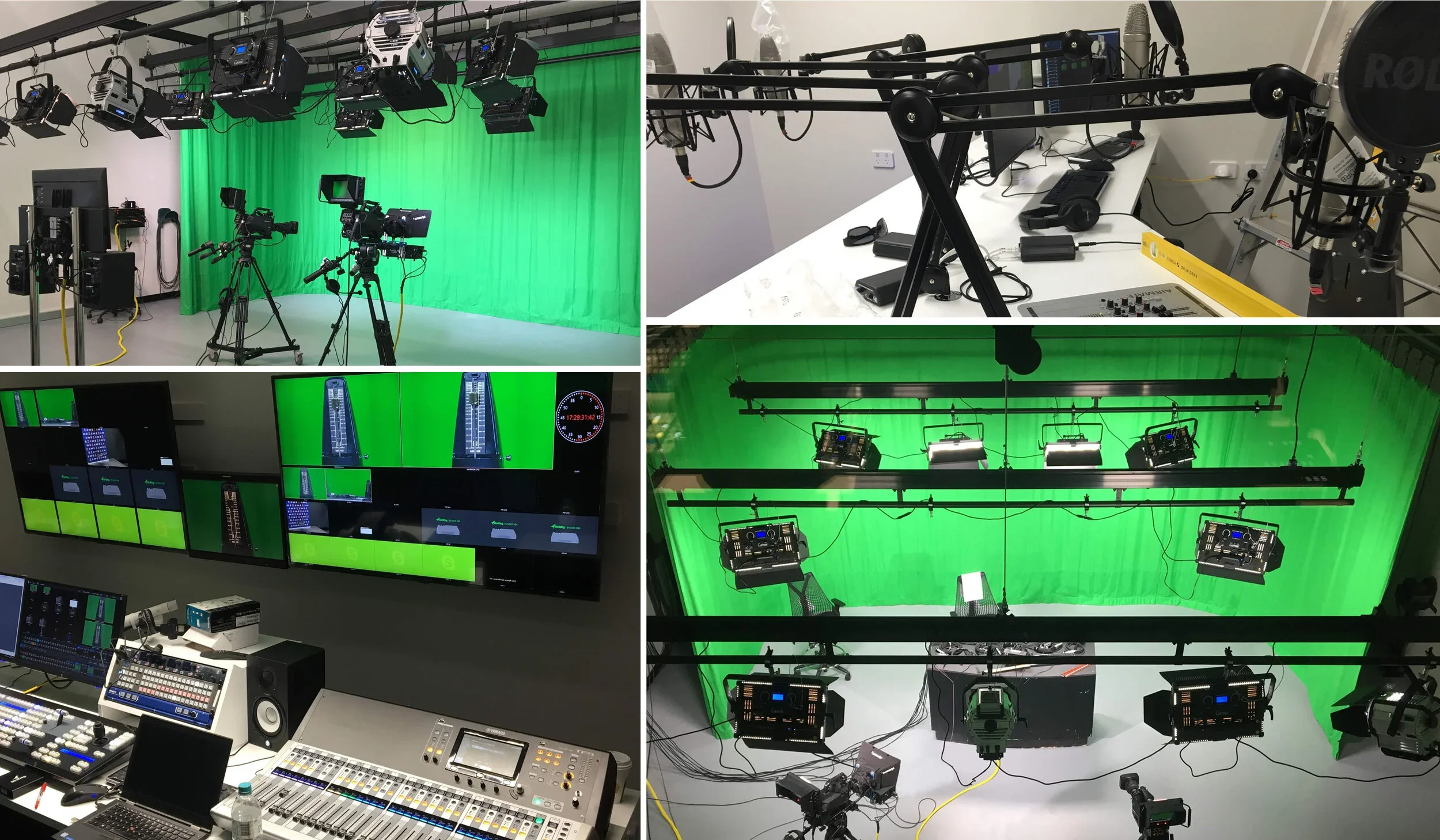 The radio studio is designed to accommodate a host and up to 4 guests. All audio sources are mixed locally with all microphones also available as Dante IP sources. The option for video coverage is also provided through the 3 Panasonic PTZ NDI cameras while a Newtek Tricaster Mini allows the operators the ability to control and switch the cameras. Furthermore, an integrated Newtek Talkshow device provides Skype™ native integration in both the TV and radio studios.